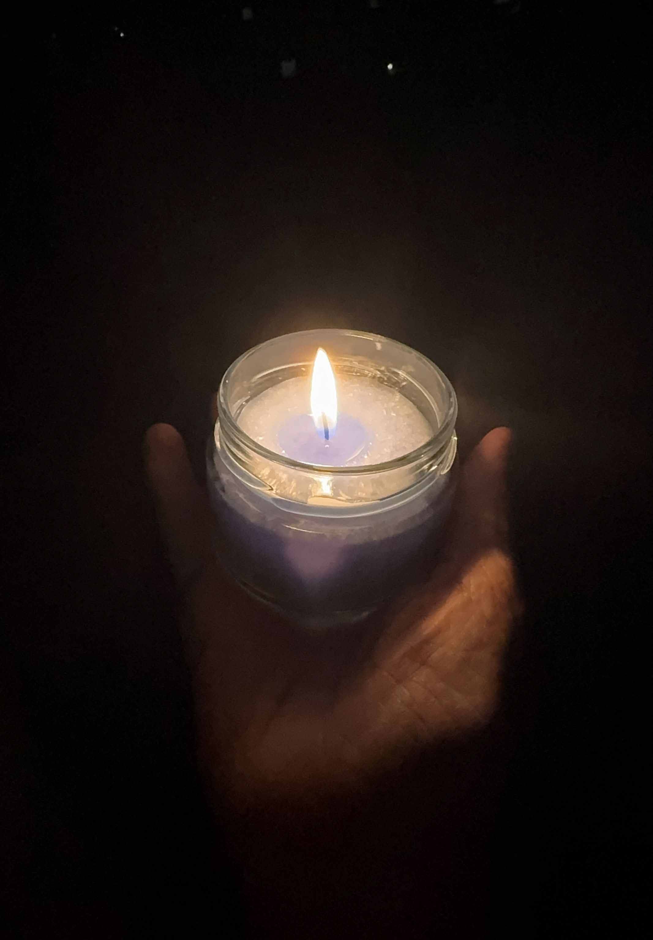 4. Die Flamme betrachten. Stell dir vor, dass ihr Licht nun Frieden in die Welt trägt.