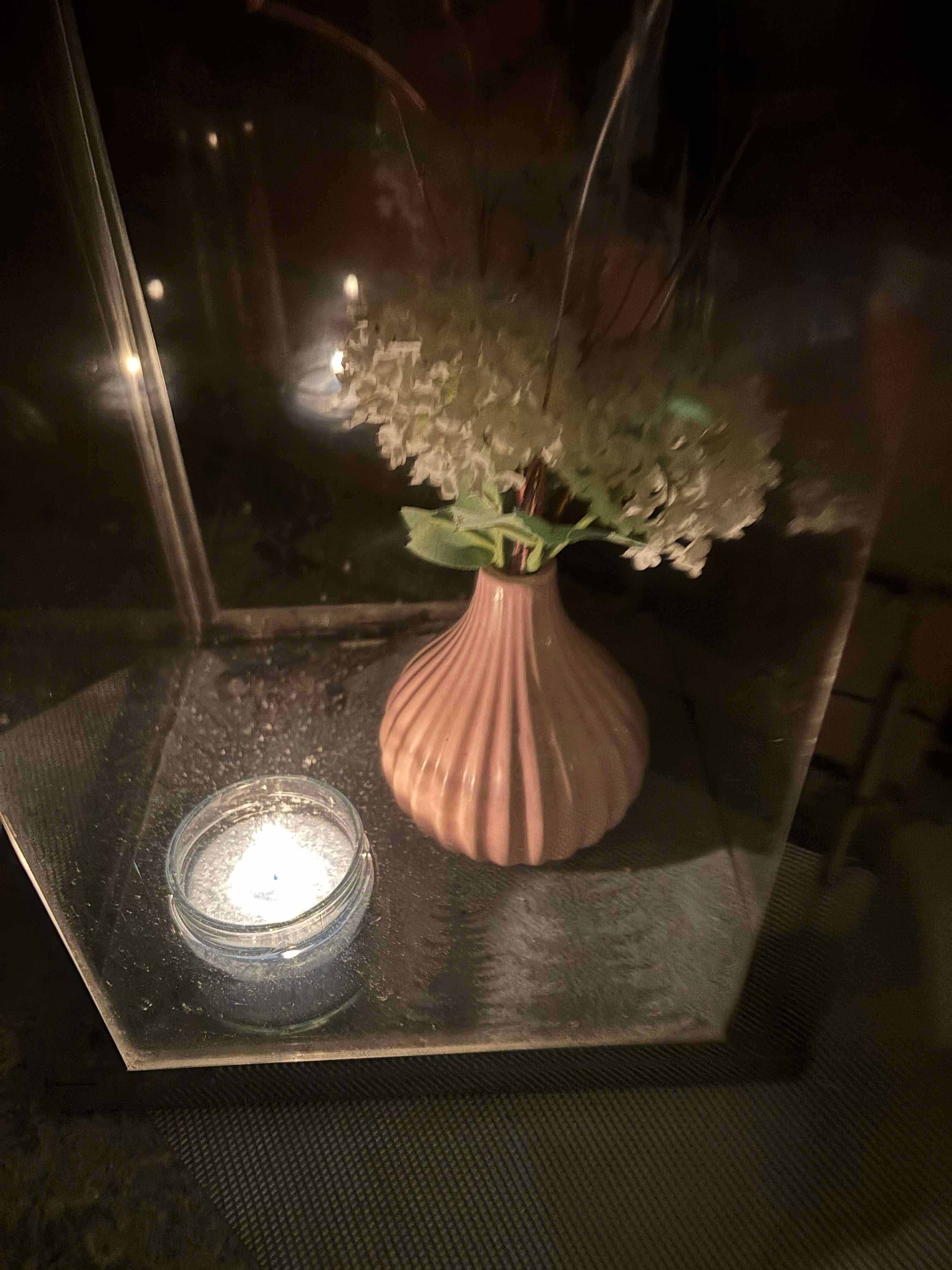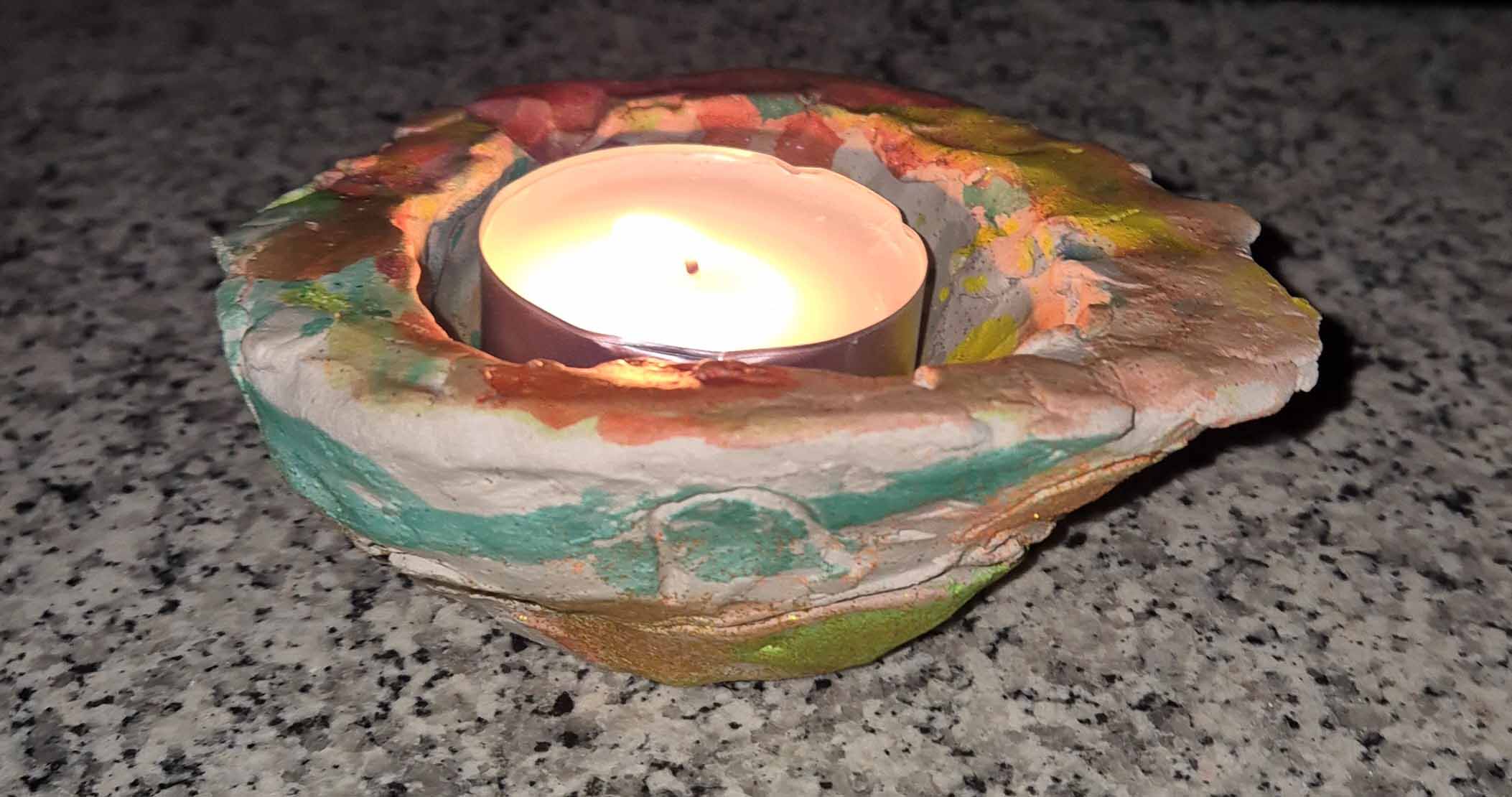 Kerze in grünem Teelichthalter